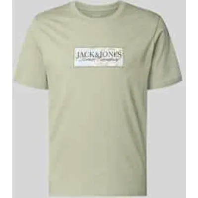 Heren T-shirt van Jack & Jones;puur katoen;recht model;ronde hals;Label-Print;ruglengte bij maat M: 67 cm