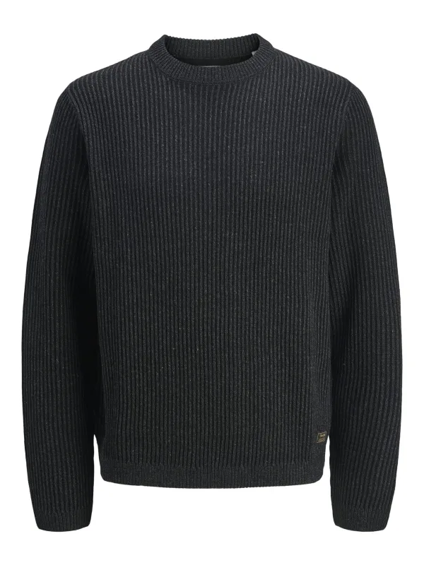 Gebreide herenpullover van Jack & Jones;Katoenmix;Los model;Model 'DOVER';Ribboorden;Ronde hals;Labeldetail;Ruglengte bij maat M: 71 cm;Mouwlengte bij maat M: 68 cm