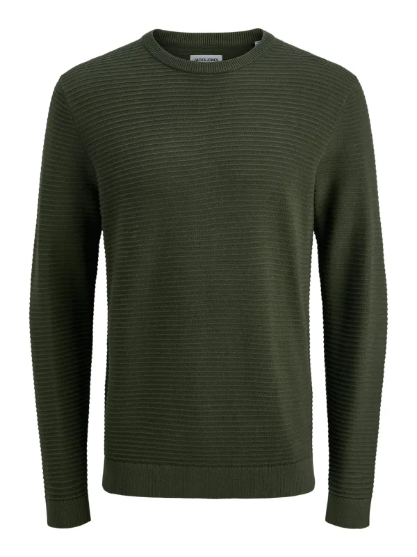 Gebreide herenpullover van Jack & Jones;Puur katoen;Regular fit;Model 'OTTO';Structuurpatroon;Ronde hals;Ruglengte bij maat M: 70 cm;Mouwlengte bij maat M: 70 cm