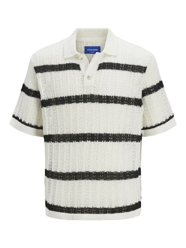 Design: Geribbelde kraag; Type sluiting: Knoopsluiting; Materiaal: Knitwear; Halstype: Polokraag; Motief: Gestreept; Extra's: All-over patroon; Pasvorm: Losse pasvorm; Armlengte: Halve mouw; Lengte: Normale lengte