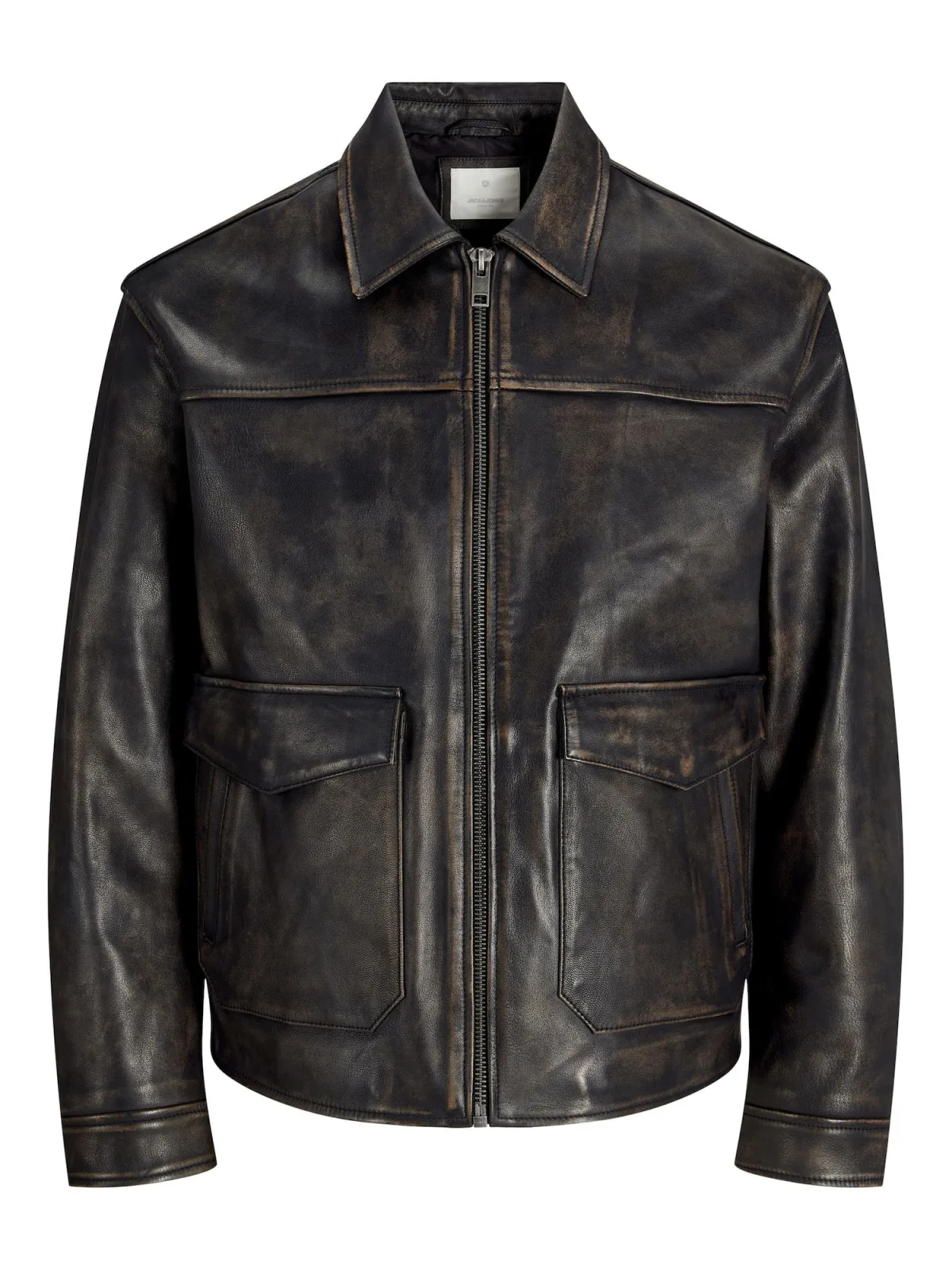 Design: Turn-down kraag; Type sluiting: Ritssluiting; Type jas: Bikerjack; Voering: Licht gevoerd; Materiaal: Leer; Motief: Effen; Extra's: Used-look; Pasvorm: Normale pasvorm