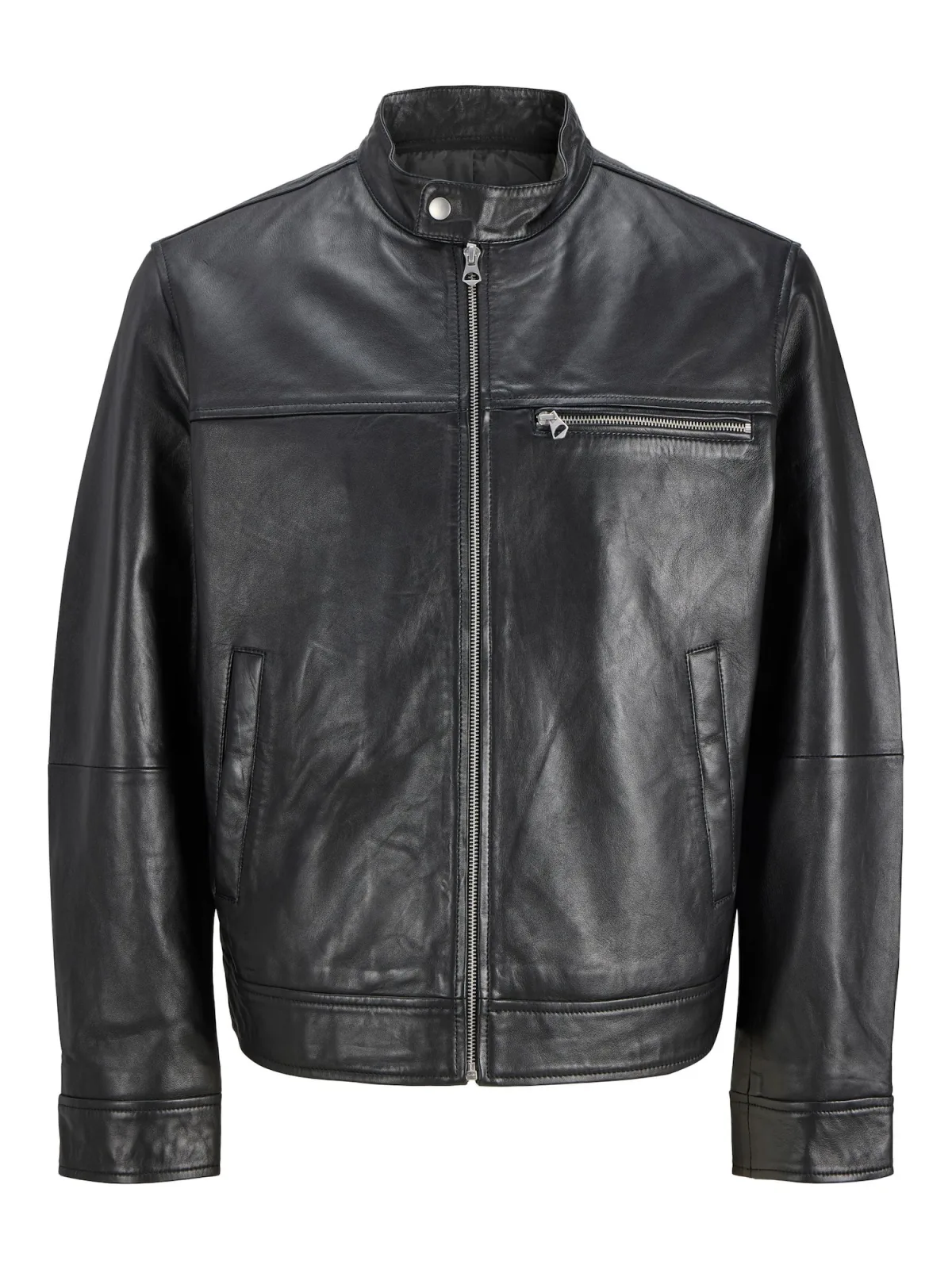 Type jas: Bikerjack; Voering: Licht gevoerd; Materiaal: Leer; Motief: Effen; Pasvorm: Normale pasvorm