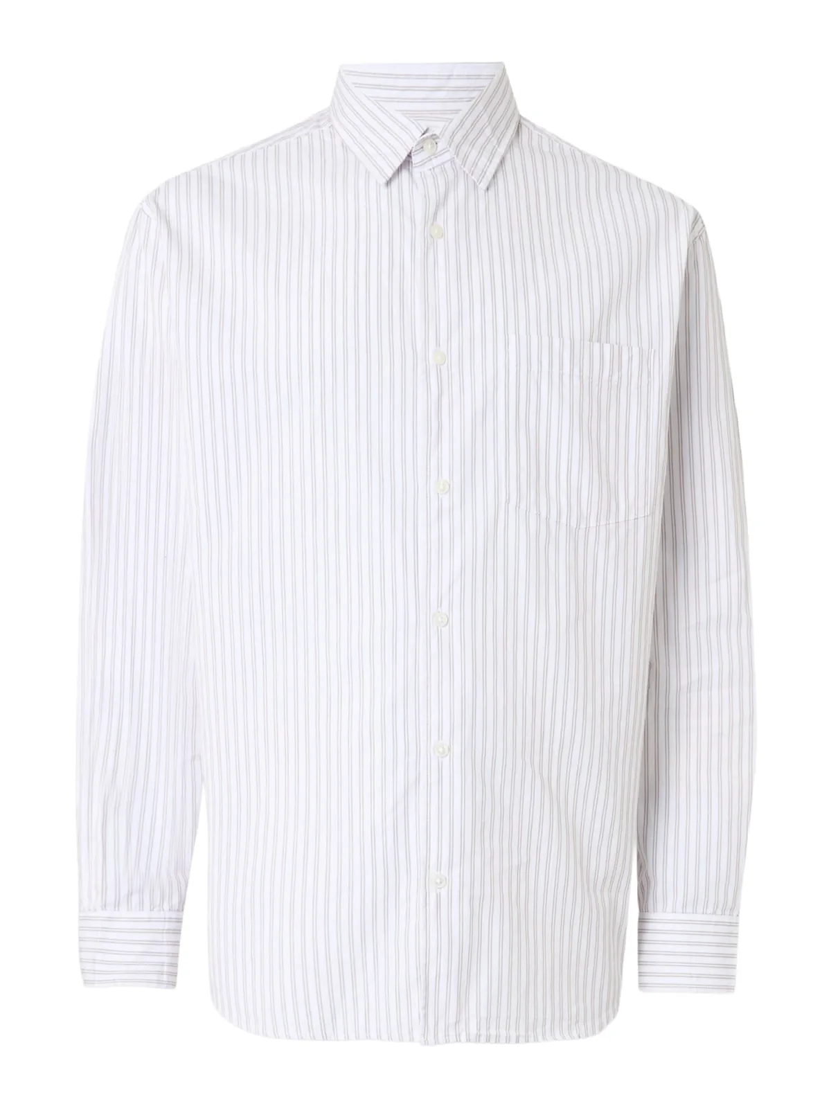 Design: 2-knoops manchetten, Ronde zoom; Type sluiting: Knoopsluiting; Materiaal: Katoen; Motief: Krijtstrepen; Kraag: Kentkraag; Extra's: All-over patroon, Voelt zacht aan; Pasvorm: Comfort fit; Armlengte: Lange mouw