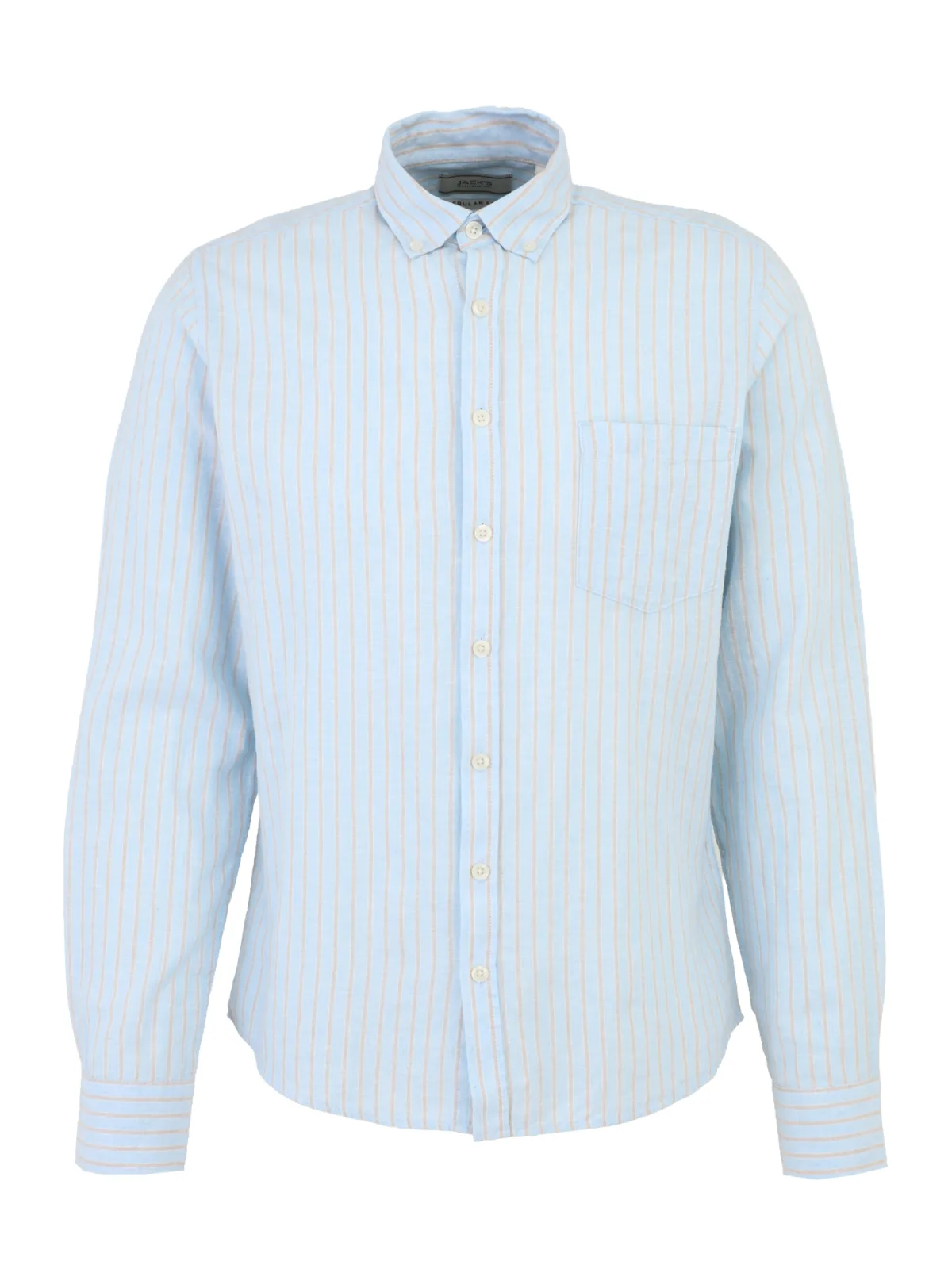 Design: Rugplooi, Borstzak; Type sluiting: Knoopsluiting; Materiaal: Linnen; Motief: Gestreept; Kraag: Button-down; Extra's: All-over patroon, Lichte stof; Pasvorm: Regular fit; Armlengte: Lange mouw