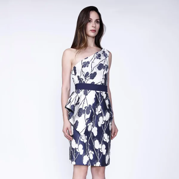 Deze jurk heeft een glamoureuze en moderne look dankzij zijn bloemrijke Jacquard en asymmetrische sculpturale constructie. Een stuk om te exposeren tijdens uw volgende cocktail of evenement, uitje of bruiloft. Leningvorm van het lichaam, schouder op een schouder die de bustier, extra riem verstrekt houdt. Productdetails: Vorm: gemonteerd Lengte: 87 cm; kort Zonder bustier handvat Metalen zip center terug