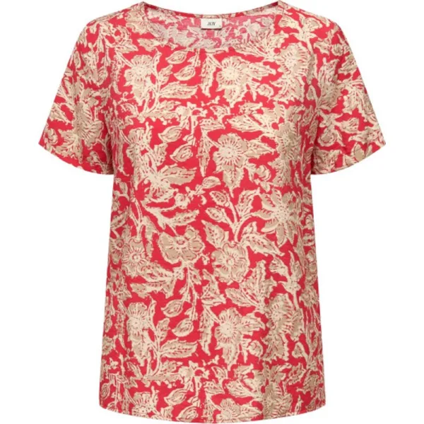 Deze blouse voor dames van JDY is gemaakt van een Viscosemix. Het model heeft een ronde hals, korte mouwen en een allover print. Extra details: Ronde hlas Allover print Korte mouwen.Materiaal:85% Viscose 15% NylonWasvoorschrift:Machinewas max. Fijnwas 30 graden Celsius. Niet in droger