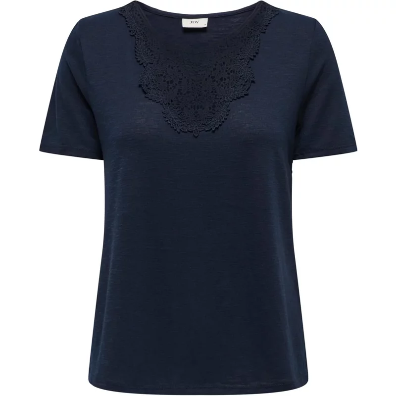 Geen garderobe is compleet zonder een paar zachte en tijdloze basics die perfect zijn voor elke gelegenheid en elk seizoen.Extra details Producttype : Top Neck : Ohals Mouw : Korte mouwen Details : Kanten detail Pasvorm : Regular fitMateriaal96% Polyester 4% ElastaanWasvoorschrift:Machinewas max. Fijnwas 30 graden Celsius. Niet in droger
