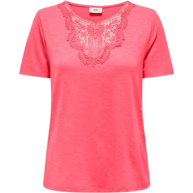 Geen garderobe is compleet zonder een paar zachte en tijdloze basics die perfect zijn voor elke gelegenheid en elk seizoen.Extra details Producttype : Top Neck : Ohals Mouw : Korte mouwen Details : Kanten detail Pasvorm : Regular fitMateriaal96% Polyester 4% ElastaanWasvoorschrift:Machinewas max. Fijnwas 30 graden Celsius. Niet in droger