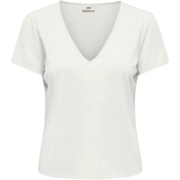 Dit Tshirt voor dames van JDY is gemaakt van een polyestermix. Het model heeft een V hals en korte mouwen.Extra details: Glitter detail Korte mouwen VhalsMateriaal:97% Polyester 3% ElastaanWasvoorschrift:Machinewas max. Fijnwas 30 graden Celsius. Niet in droger