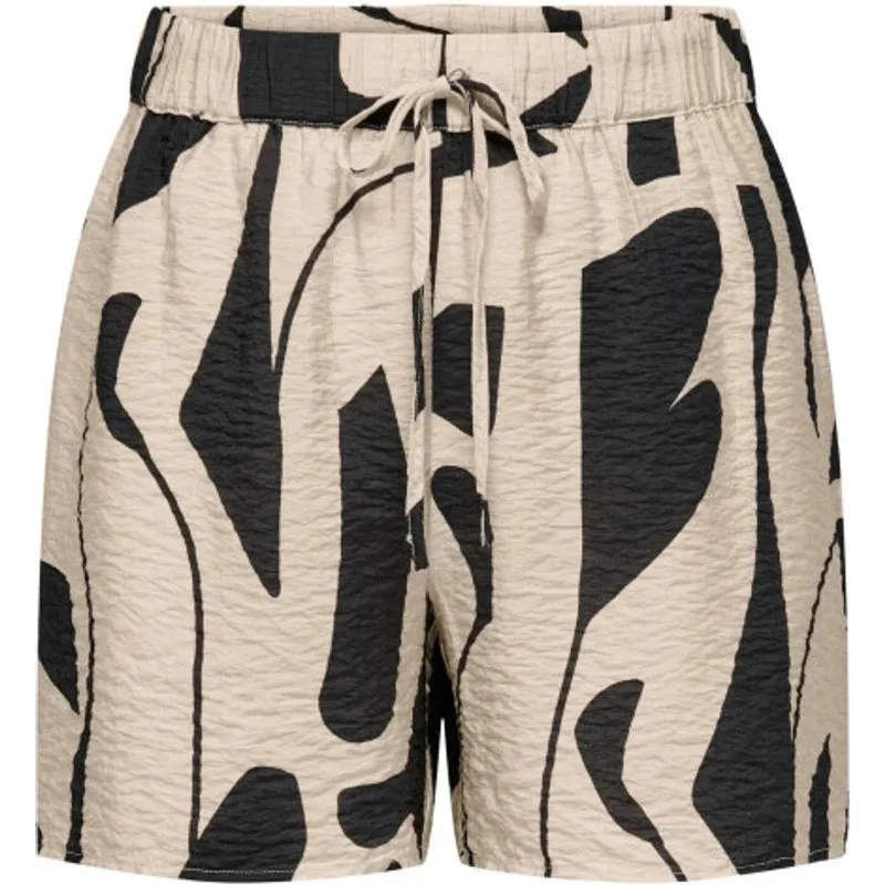 Deze loose fit casual short is gemaakt van een polyestermix en heeft een zebraprint. Het model heeft een mid waist en heeft een elastische tailleband met aantrekkoord.Extra details zijn: Koordsluiting Mid waist Elastische taillebandMateriaal:85% Viscose 15% NylonWasvoorschrift:Machinewas max. Fijnwas 30 graden Celsius. Niet in droger