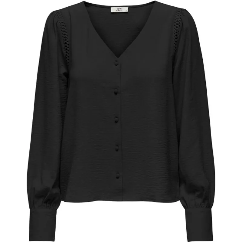 De blouse van Jacqueline de Yong heeft een vhals en een lange mouw. De achterkant van de blouse valt langer dan de voorkant. De zoom loopt rond weg. Het is een losser vallend model.Extra details: Vhals Knoopsluiting Lange mouwen.Verkrijgbaar is verschillende kleuren.Materiaal:100% Polyester Wasvoorschrift:Machinewas max. Fijnwas 30 graden Celsius. Niet in droger