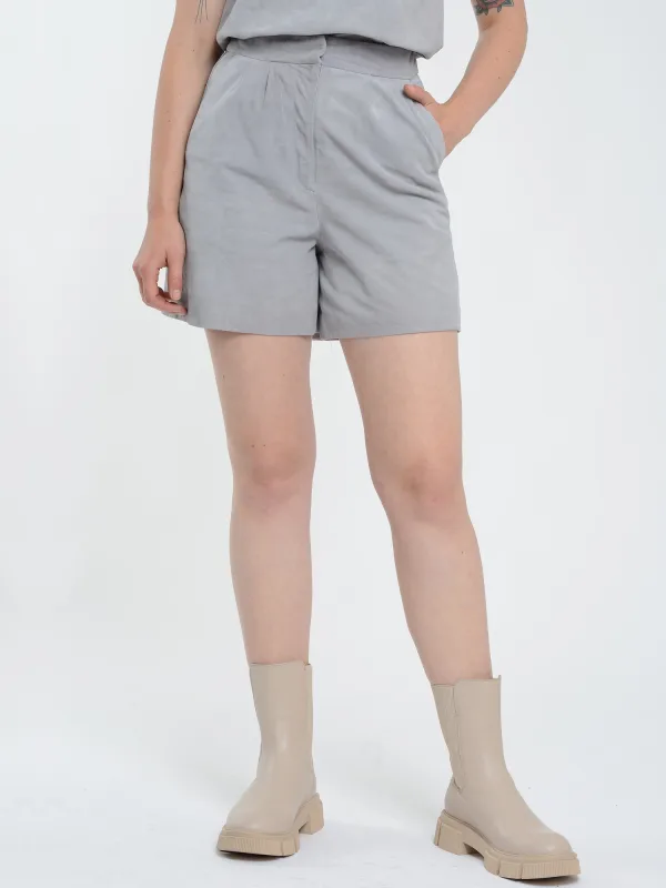 Design: Paspelzak; Type sluiting: Drukknoop; Materiaal: Leer; Motief: Effen; Details: Plooien; Lengte: Kort/mini; Pasvorm: Regular; Taillehoogte: High waist
