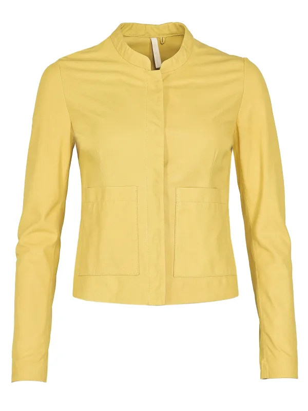 Design: Opgezette zakken; Type sluiting: Drukknoop; Type jas: Blouson; Voering: Niet gevoerd; Materiaal: Leer; Motief: Effen; Pasvorm: Normale pasvorm