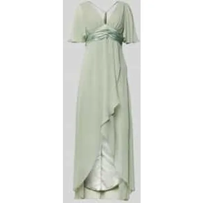 Avondjurk voor dames van Jake*s Cocktail;Look: Effen kleuren;Pasvorm: Getailleerd;Lengte: Maxi;Hals: V-hals;Details: Plooien;Sluiting: Naadritssluiting;Mouwvorm: Korte mouw;Materiaal: Chiffon;Ruglengte bij maat 36: 150 cm;Borstomvang bij maat 36: 39 cm;Mouwlengte bij maat 36: 27 cm