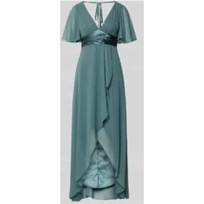 dames midi-jurk van Jake*s cocktail;Chiffon;getailleerd model;Diepe V-hals;Volants;tailleband;ruglengte bij maat 36: 35 cm;borstwijdte bij maat 36: 32 cm;mouwlengte bij maat 36: 30 cm