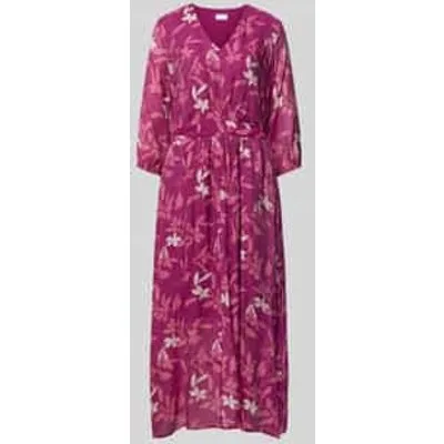Midi-jurk van Jake*s Collection voor dames;Viscosemix;Los model;V-hals;All-over print;Ruglengte bij maat 36: 132 cm;Borstomvang bij maat 36: 50 cm;Mouwlengte bij maat 36: 47 cm