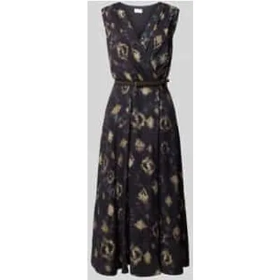 Midi-jurk van Jake*s Collection voor dames;Viscosemix;Recht model;V-hals;Wikkellook;Tailleriem met doornsluiting;Ruglengte bij maat 38: 119 cm;Borstomvang bij maat 38: 36 cm