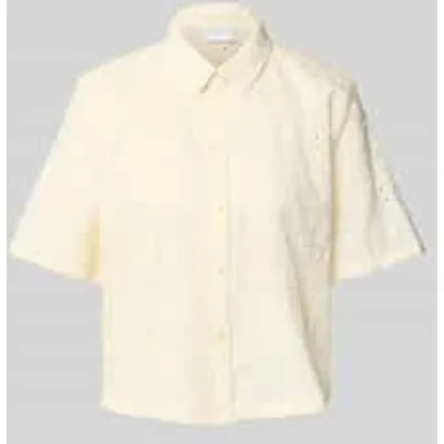 Overhemdblouse van Jake*s Collection voor dames;Puur katoen;Regular fit;Overhemdkraag;Doorknoopsluiting;1/2-mouw;Ajourwerk;Motiefstitching;Ruglengte bij maat 36: 54 cm;Mouwlengte bij maat 36: 27 cm