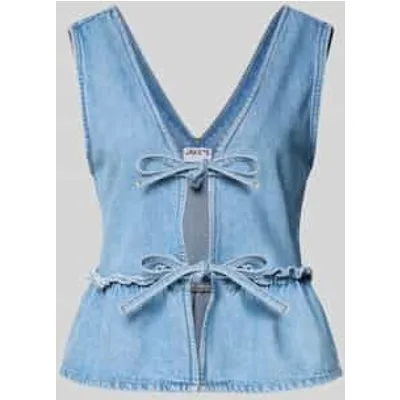 Dames Bodywarmer van JAKE*S STUDIO WOMAN;regular fit;Denim-look;Vetersluiting;V-hals;Ruglengte bij maat 36: 34 cm