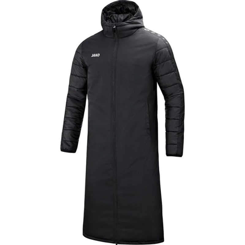 De juiste uitrusting in het koude seizoen is essentieel. Wanneer de spelers bij vriestemperaturen op de bank zitten, dienen ze zich warm te houden om daarna het beste van zichzelf te kunnen geven. Hierbij helpt de bankmantel Team. De extra lange jas reikt tot onder de knie en houdt zelfs inactieve spelers warm. De JAKO eigenschappen STOP WIND, STOP WATER en KEEP WARM beschermen tegen alle weersomstandigheden. De thermisch isolerende voering, de doorstikte naden op borst en rug, alsook aan de mouwen, garanderen een optimaal warmtegevoel. De dubbele ritssluiting met zippergarage kan makkelijk geopend en gesloten worden. De gewatteerde kap met binnenvoering kan wanneer nodig, over het hoofd getrokken worden. De jas is vervaardigd van kwalitatief, hoogwaardig Polyester-Ribstop. De wattering bestaat uit Polyester. Maten:volwassenen S t/m XXL