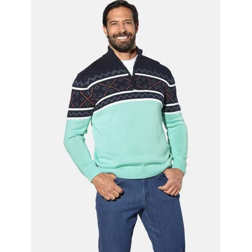 JAN VANDERSTORM is uw expert voor herenmode in grote maten. De BJORNHOLM trui van JAN VANDERSTORM is simpelweg het perfecte kledingstuk voor sterke mannen. Het kleurcontrast in colour blocking-stijl en het Noorse patroon aan de bovenkant geven de trui een krachtig ontwerp. De ritssluiting op de omgeslagen kraag is praktisch. Elastische manchetten aan de zoom en mouwen maken de trui nog comfortabeler in grote maten. Materiaal 55% polyacryl, 45% katoen. Machinewasbaar.