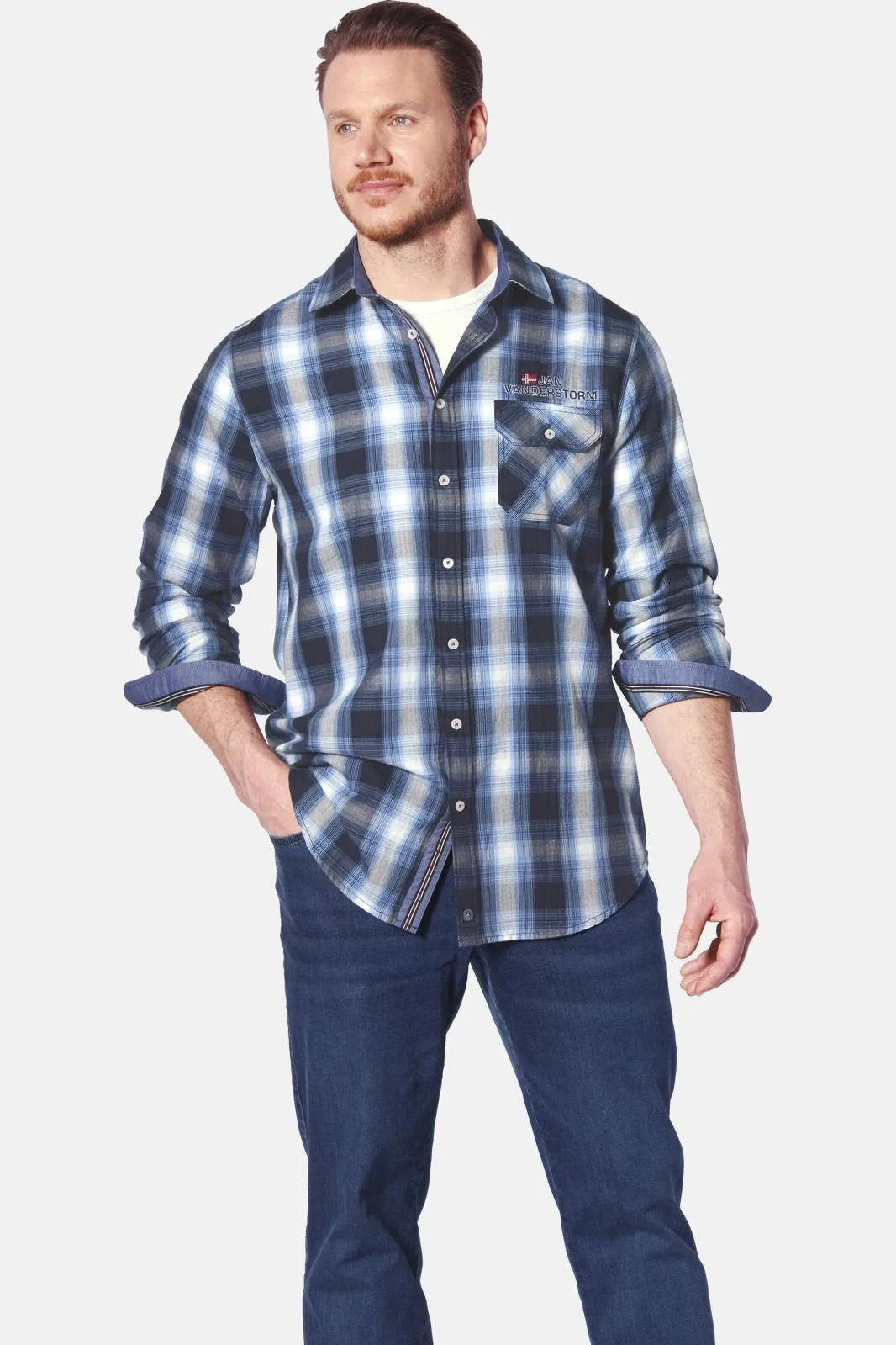 JAN VANDERSTORM is uw expert voor herenmode in grote maten. Klassiek, elegant en met een vleugje zeebries: zo overtuigt het overhemd KAITAR van JAN VANDERSTORM in volle glorie. Dit overhemd heeft een traditionele kentkraag, geraffineerde, contrasterende details op de manchetten en een stijlvol borduursel met maritieme flair. Aan de linkerkant zit een praktische borstzak met knoop, waarin u uw belangrijke spullen veilig kunt meenemen. Het decoratieve borduursel vlak boven de zak onderstreept de hoogwaardige uitstraling van het overhemd. Met het overhemd KAITAR hebt u het ideale maatje in huis voor een stijlvolle wandeling langs de kust. Materiaal: 100% katoen. Geschikt voor de wasmachine. Collectie +Fit: comfortabel model uit onze +Fit-collectie. Met ons speciale model +Comfort is dit bovenstuk langer aan de voorkant zodat het in de broek gedragen kan worden zonder dat het uit de broeksband glipt, ook bij een duidelijk buikje.