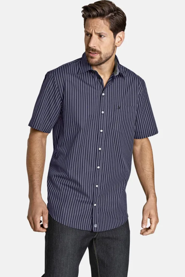 JAN VANDERSTORM is uw expert voor herenmode in grote maten. Casual combipartner bij denim en co: overhemd PERTTU weet wat er van hem wordt verwacht. Het heeft een recht model en modieuze strepen. Met comfortabele plooi op de rug, kentkraag en opgestikte borstzak. Van 100% katoen. Geschikt voor de wasmachine.details van dit overhemd:• 1 borstzak