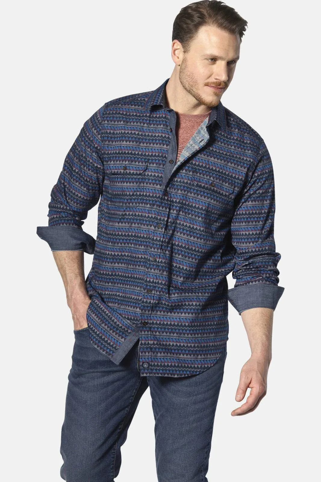 JAN VANDERSTORM is uw expert voor herenmode in grote maten. Het overhemd HALJORN van JAN VANDERSTORM is een must-have voor alle forse mannen die een stoere stijl met een vleugje modieuze elegantie weten te waarderen. De klassieke kentkraag staat garant voor een verzorgde look en laat het markante motief erg goed tot zijn recht komen. De twee borstzakken met praktische knoopsluiting maken dat u belangrijke dingen altijd veilig binnen handbereik hebt. Een stijlvol borduursel op de linker borstzak geeft het casual overhemd een hoogwaardige touch. Met het overhemd HALJORN maakt u dus een waar modestatement, zonder daarbij in te boeten aan uw casual uitstraling. Materiaal: 100% katoen. Geschikt voor de wasmachine. Collectie +Fit: comfortabel model uit onze +Fit-collectie. Met ons speciale model +Comfort is dit bovenstuk langer aan de voorkant zodat het in de broek gedragen kan worden zonder dat het uit de broeksband glipt, ook bij een duidelijk buikje.