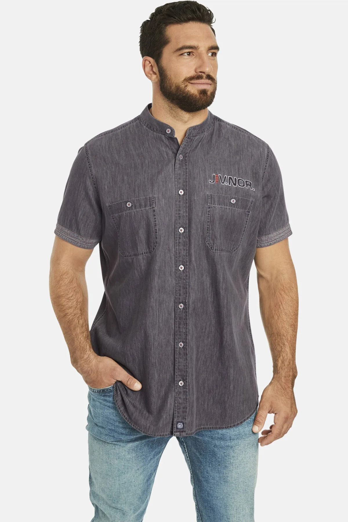 JAN VANDERSTORM is uw expert voor herenmode in grote maten.Gaat u voor een extra coole look? Dan is relaxed overhemd met korte mouwen LUZZA van JAN VANDERSTORM precies wat u zoekt. Het heeft een authentieke spijkerlook met een modieuze wassing, is afgewerkt met een eenvoudige opstaande kraag en voegt een vleugje rebellie toe aan elke outfit. De borstzakken maken een gedurfd statement en zorgen voor de uitstraling van een moderne avonturier. Een opvallende print op de borst rondt de look af. Met LUZZA onderscheidt u zich wat stijl betreft gegarandeerd. 100% katoen Geschikt voor de wasmachine.