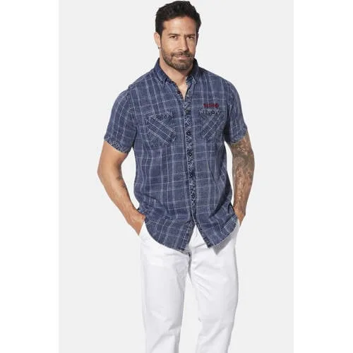 JAN VANDERSTORM is uw expert voor herenmode in grote maten. Het KJELTAN overhemd met korte mouwen van JAN VANDERSTORM combineert relaxte nonchalance met praktisch gemak en is een must-have voor warme dagen. De button-down kraag complementeert de relaxte stijl, terwijl het geruite patroon en de denim look een stoere touch toevoegen. De twee borstzakken met knoopsluiting bieden handige opbergruimte en worden onderbroken door gebogen borduursels op de borst. Een koele wassing geeft het oversized overhemd een bijzonder trendy look. Dit overhemd met korte mouwen in grote maten is gewoon ideaal voor mannen die weten wat ze willen. Materiaal 100% katoen. Machinewasbaar.
