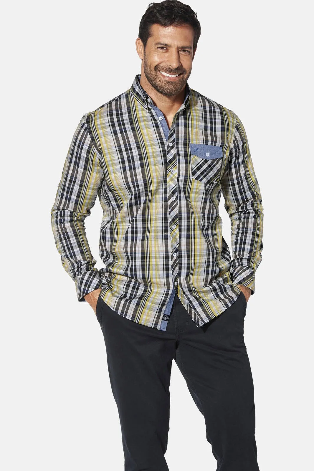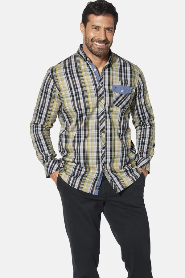 JAN VANDERSTORM is uw expert voor herenmode in grote maten. Het PERBEN overhemd van JAN VANDERSTORM voegt een vleugje zwier toe aan je garderobe! Met zijn expressieve ruitpatroon komt hij helemaal tot zijn recht. De coole accenten van dit herenoverhemd in grote maten zijn de opvallende kraag met knopen en de handige manchetknopen. Bijzonder geraffineerd: De geborduurde borstzak met jeansflap en knoop zorgt voor de ultieme finishing touch. Je nieuwe lievelingsoverhemd: sportief, modern en perfect gesneden voor grote en grote maten. Ga op ontdekkingsreis door Scandinavië met dit krachtige plus size overhemd! Materiaal 100% katoen. Machinewasbaar.