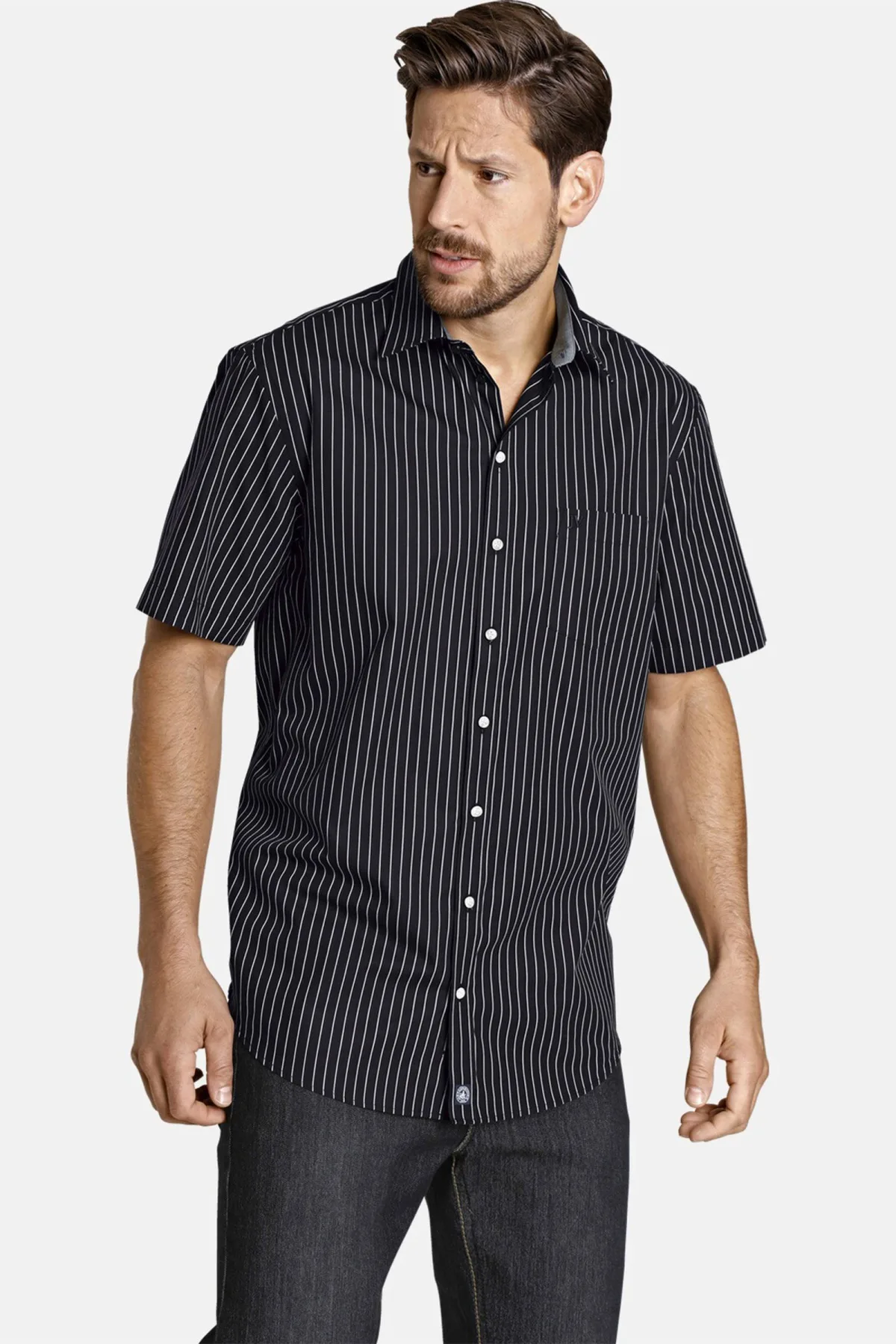 JAN VANDERSTORM is uw expert voor herenmode in grote matenCasual combipartner bij denim en co: overhemd PERTTU weet wat er van hem wordt verwacht. Het heeft een recht model en modieuze strepen. Met comfortabele plooi op de rug, kentkraag en opgestikte borstzak. Van 100% katoen. Geschikt voor de wasmachine.