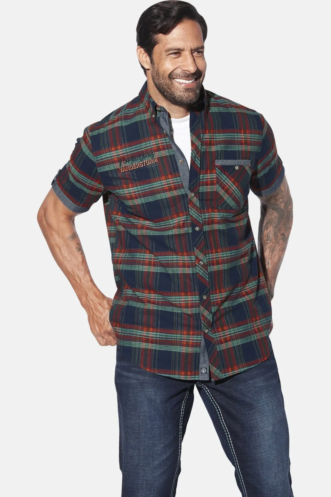 JAN VANDERSTORM is uw expert voor herenmode in grote maten. Het SNALLE overhemd met korte mouwen van JAN VANDERSTORM maakt indruk met zijn ontspannen ruitpatroon en is daarmee de ideale metgezel voor in de vrije tijd. De button-down kraag geeft het overhemd een chique uitstraling en de borstzak met knoop is bijzonder praktisch. De borstprint in combinatie met los borduursel is een echte blikvanger en geeft het ontwerp extra panache. Contrasterende mouwboorden voegen casual accenten toe. Dit overhemd is de perfecte keuze voor mannen met een buikje die van casual houden. Materiaal 100% katoen. Machinewasbaar.