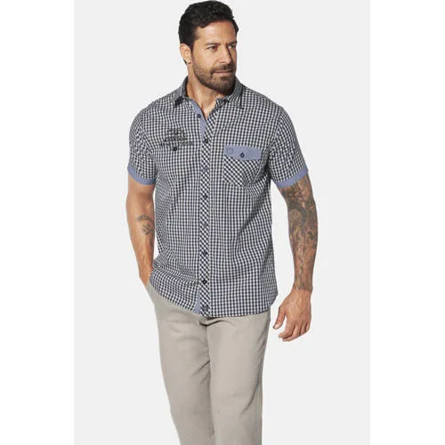 JAN VANDERSTORM is uw expert voor herenmode in grote maten.Het GHOTIN overhemd met korte mouwen van JAN VANDERSTORM geeft elke garderobe een stoere charme. Met zijn brutale ruitpatroon en gedurfde print op de borst trekt het gegarandeerd de aandacht. De casual Kent-kraag en kleurcontrasterende mouwboorden geven het een extra dosis stijl. Het overhemd met klepzak op de borst is een geweldige partner voor losse jeans of casual shorts – perfect voor alle mannen die van ongecompliceerd houden. Voeg het GHOTIN overhemd met korte mouwen dus toe aan je garderobe en laat zien dat je smaak hebt!