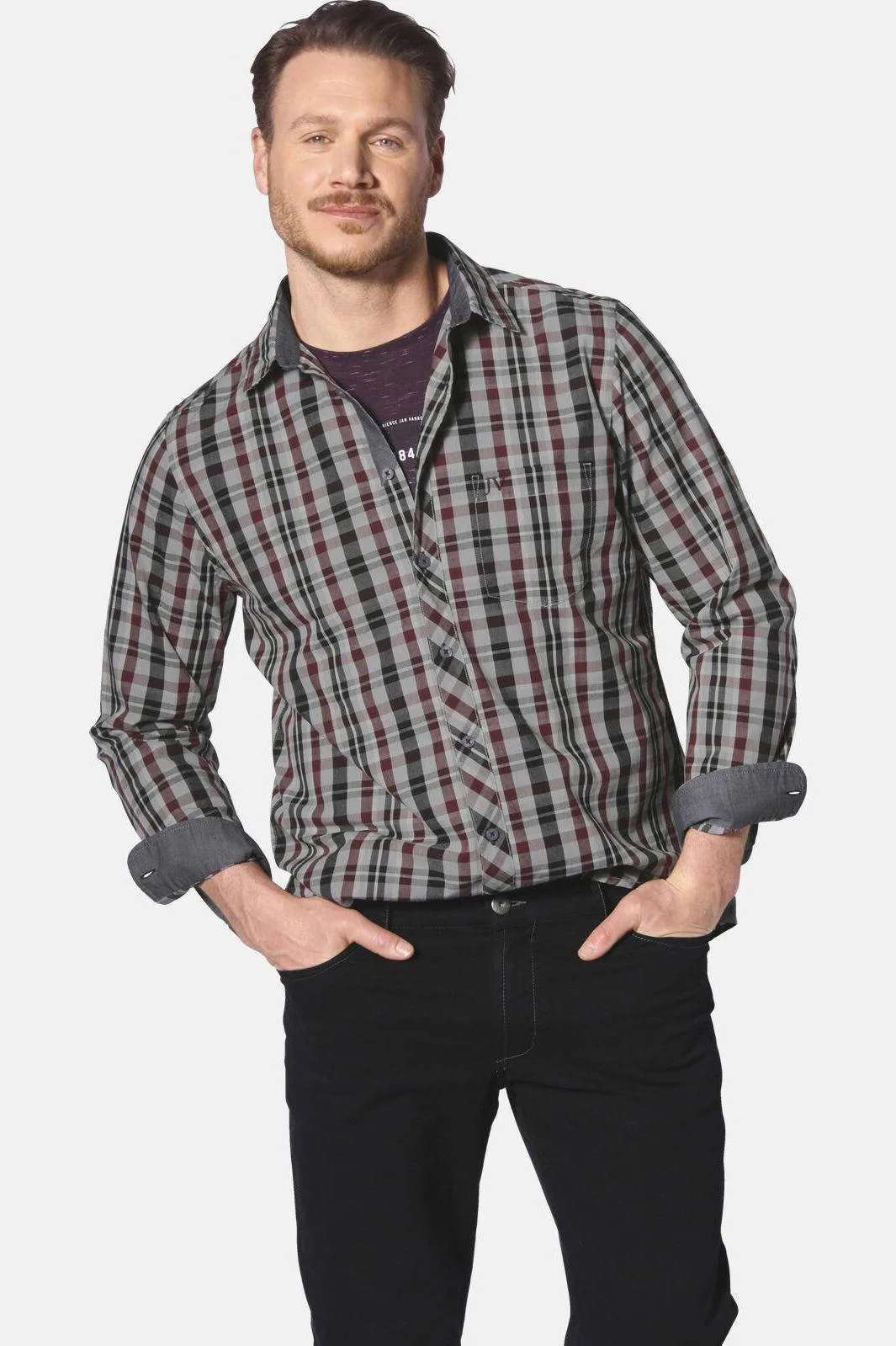JAN VANDERSTORM is uw expert voor herenmode in grote maten. Het overhemd JOKSE van JAN VANDERSTORM is de ultieme must-have voor iedereen die houdt van ongecompliceerde kleding, maar er toch ook cool uit wil zien. Met zijn kentkraag en het casual ruitmotief is het perfect voor een relaxte dag in de buitenlucht. De kleuren zijn echt mooi en geven het geheel een frisse touch. Aan de linkerkant zit een borstzak – handig voor uw wandelkaart of andere dingen die u graag bij u wilt hebben. En het borduursel op de zak? Die maakt het geheel nog een tikje stijlvoller. Kortom: met het overhemd JOKSE bent u klaar om naar buiten te gaan, hetzij in de tuin, op de camping of gewoon op het balkon. Materiaal: 100% katoen. Geschikt voor de wasmachine. Collectie +Fit: comfortabel model uit onze +Fit-collectie. Met ons speciale model +Comfort is dit bovenstuk langer aan de voorkant zodat het in de broek gedragen kan worden zonder dat het uit de broeksband glipt, ook bij een duidelijk buikje.