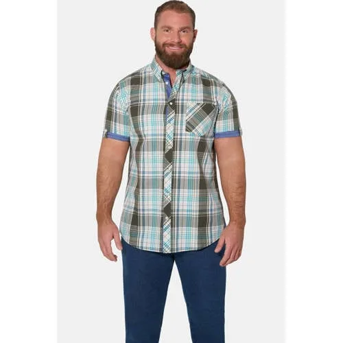 JAN VANDERSTORM is uw expert voor herenmode in grote maten. Een shirt met korte mouwen en een stoer ruitjesmotief: het FJALAR-shirt met korte mouwen van JAN VANDERSTORM! De nette button-downkraag en de borstzak met geborduurd detail geven het shirt een elegante uitstraling, terwijl het ruitjesmotief, de kleine mouwbandjes en de chambray-afwerking zorgen voor een casual look. Ontdek dit stoere overhemd in grote maten voor een stoere look! Materiaal 100% katoen. Machinewasbaar. +FIT COLLECTIE: Comfortabele stijl uit onze +Fit collectie. Dankzij onze speciale +Comfort-pasvorm is dit overhemd aan de voorkant langer gesneden, zodat het ook bij een grotere buikomvang in de broek kan worden gedragen zonder uit te zakken.