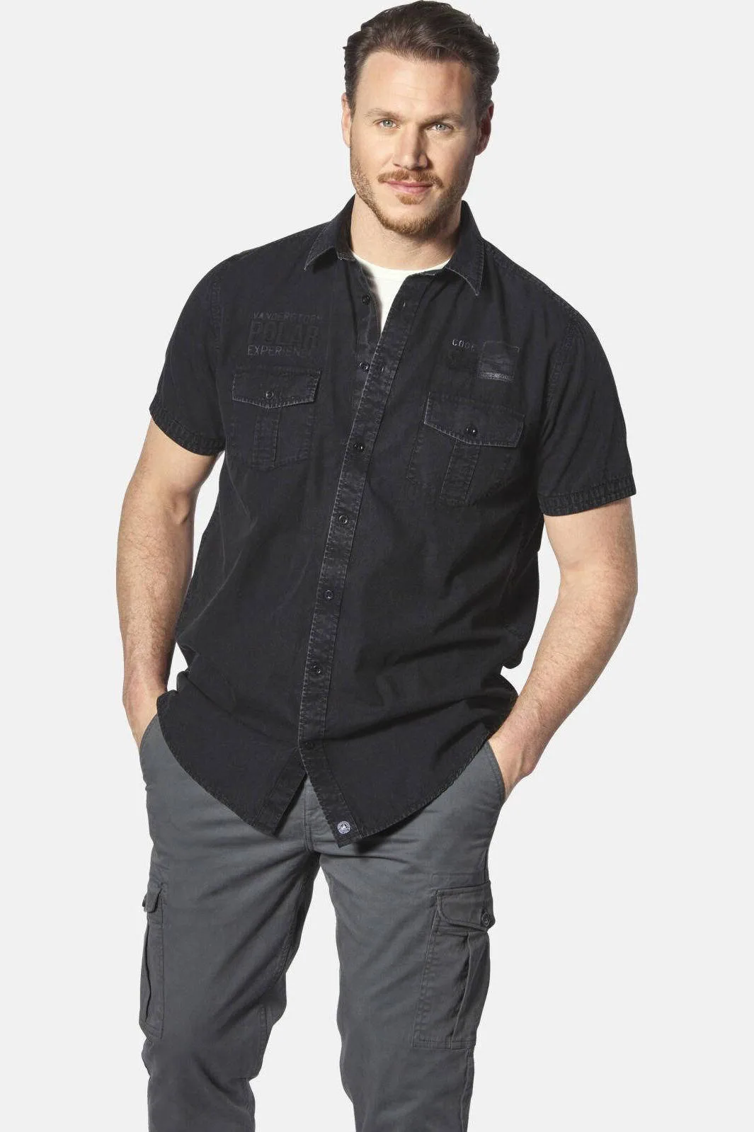 JAN VANDERSTORM is uw expert voor herenmode in grote maten. Het overhemd met korte mouwen ALPRI van JAN VANDERSTORM is casual, maar dan anders. De kentkraag contrasteert op elegante wijze met het trendy totaaldesign. Het markante acid-washed-effect creëert een uniek kleurmotief, dat meteen een avontuurlijke indruk maakt. De trendy prints en borduursels op de borst staan garant voor coole flair. Twee functionele borstzakken met knoop bieden tot slot plek voor kleine spullen die u graag bij u wilt hebben. Het overhemd met korte mouwen ALPRI is een ware blikvanger. 100% katoen. Geschikt voor de wasmachine. Collectie +Fit: comfortabel model uit onze +Fit-collectie. Met ons speciale model +Comfort is dit bovenstuk langer aan de voorkant zodat het in de broek gedragen kan worden zonder dat het uit de broeksband glipt, ook bij een duidelijk buikje.