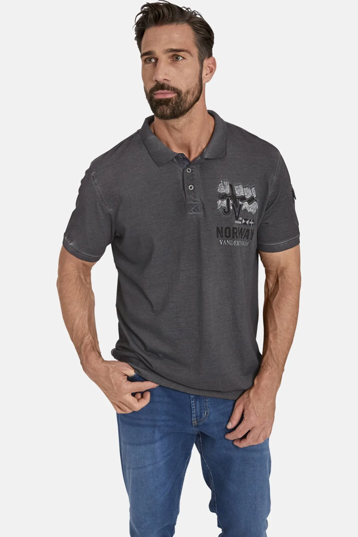 Jan Vanderstorm +FIT Collectie regular fit polo ALSING Plus Size donkergrijs Prijzen