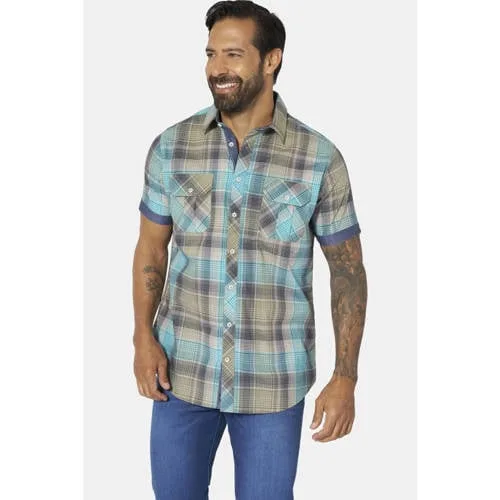 Jan Vanderstorm +FIT Collectie regular geruit casual overhemd Plus Size turquoise
