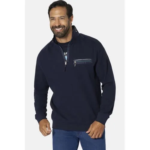 JAN VANDERSTORM is uw expert voor herenmode in grote maten. Als je op zoek bent naar een cool zeemansstuk, dan is het ABBO sweatshirt echt iets voor jou! Het herenshirt heeft een troyer kraag met een halve rits en reflecterende print. Een borstzak met rits biedt je extra opbergruimte. Het plus-size sweatshirt is gemaakt van structuurmateriaal en heeft een stoere bies op de schouders en kraag. De elastische boorden zorgen ervoor dat alles mooi op zijn plaats blijft. Als extraatje zit er ook een coole badge op de linkermouw. Met ABBO ben je goed uitgerust voor de grote reis. Materiaal 100% katoen. Machinewasbaar. +FIT COLLECTIE: Comfortabele stijl uit onze +Fit collectie. Onze elastische +hem tailleband met speciale snit zorgt voor een perfecte pasvorm onder de buik en voorkomt dat de top afzakt.