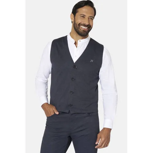JAN VANDERSTORM is uw expert voor herenmode in grote maten. Het SIEMSON tricot gilet van JAN VANDERSTORM is een echte basic. Met zijn klassieke V-hals en knoopsluiting met vier knopen is hij heel gemakkelijk aan en uit te trekken. Het gilet heeft een eenvoudige look die wordt onderbroken door een klein borduursel op de linkerkant van de borst. Een echt pluspunt voor grote maten: Het gilet is gemaakt van lichtgewicht jersey, wat zorgt voor XXL comfort. Onze herengilets - voor binnen of buiten - bieden maximaal comfort en een sportieve, moderne look in grote maten en plusmaten! 63% polyester, 33% viscose, 4% elastaan. Machinewasbaar.