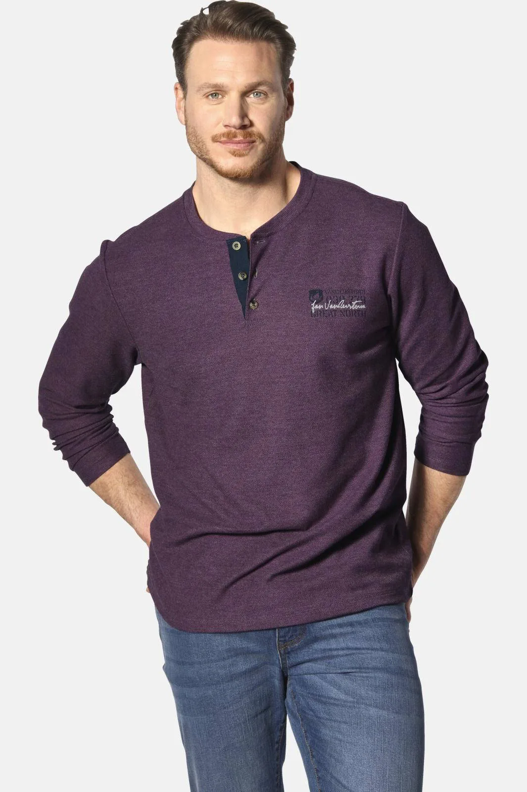 Jan Vanderstorm longsleeve IVOR Plus Size met printopdruk en textuur Prijzen