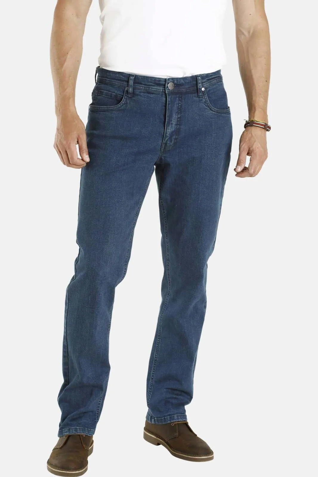 JAN VANDERSTORM is uw expert voor herenmode in grote maten. De spijkerbroek ALMIN is ideaal voor een casual look. Dankzij stretch en grote flexibiliteit kan deze spijkerbroek alle dagelijkse activiteiten aan. De rechte spijkerbroek heeft rond de heupen, benen en voeten een normale wijdte. Daardoor kan hij veelzijdig worden gecombineerd en zorgt hij voor een aantrekkelijke look. Deze basic spijkerbroek met moderne look is een absolute must-have. Van 98% katoen, 2% elastaan. Geschikt voor de wasmachine.details van deze jeans:• stijlnaam: Almin