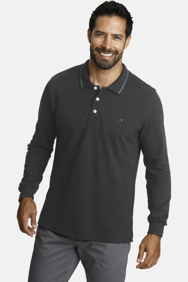 JAN VANDERSTORM is uw expert voor herenmode in grote maten. Een ongecompliceerde combipartner: het poloshirt met lange mouwen ELLIS past bij alle vrijetijds- en casual outfits, perfect op een spijkerbroek of chino. Basic design, recht model. Een klassiek highlight met drie knopen en praktische zijsplitten. Van 100% katoen. Donkergrijs 70% katoen, 30% polyester. Geschikt voor de wasmachine.