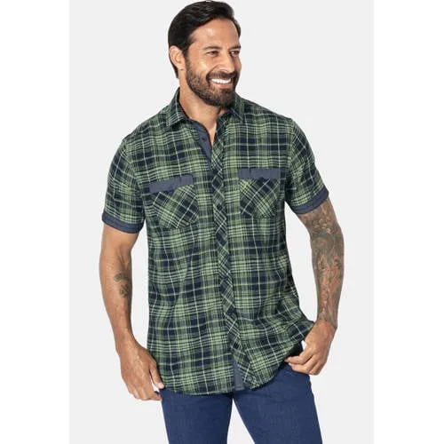 JAN VANDERSTORM is uw expert voor herenmode in grote maten. Hier komt je nieuwe favoriete AALVAN overhemd met korte mouwen van JAN VANDERSTORM, met een fris, geruit dessin voor een casual outfit. De knoopsluiting aan de voorkant en chique contrasterende details op de praktische borstzakken geven dit herenoverhemd een stoere look. In combinatie met jeans of shorts slaat het AALVAN Kent kraagoverhemd altijd een goed figuur. Ideaal voor ontspannen dagen of als het wat nonchalanter moet, met dit overhemd ben je altijd passend en stijlvol gekleed.