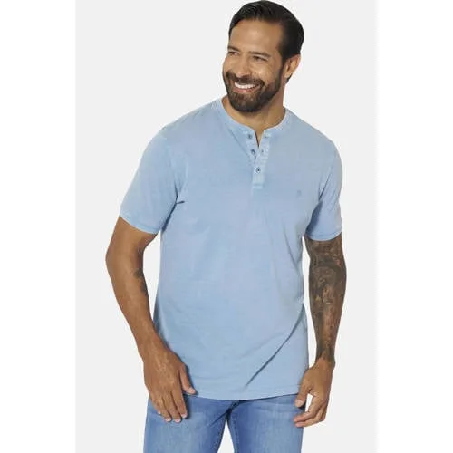 JAN VANDERSTORM is uw expert voor herenmode in grote maten. Het TAAGURD T-shirt van JAN VANDERSTORM is een echte eyecatcher voor echte jongens die waarde hechten aan nonchalance. Met zijn coole henley-kraag en knopen zal dit shirt iedereen aanspreken die houdt van ongecompliceerd maar stijlvol. Het subtiele patroon van fijne strepen voegt een speciaal tintje toe zonder afbreuk te doen aan de combinatie met andere stukken. Het discrete borduursel op de borst benadrukt het individuele karakter van het overhemd. De kleine zijsplitten zorgen bovendien voor extra bewegingsvrijheid. Het TAAGURD T-shirt is perfect als veelzijdige basic.