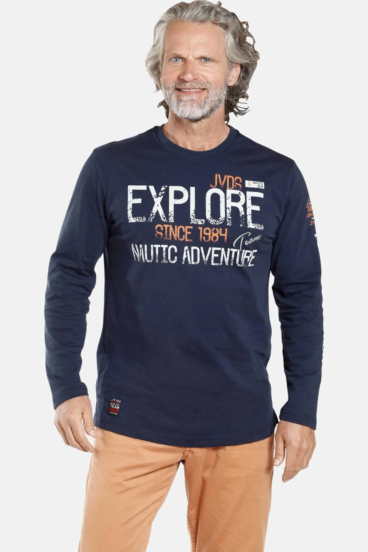Jan Vanderstorm oversized longsleeve ELION Plus Size met tekst donkerblauw Prijzen