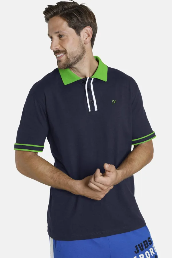 JAN VANDERSTORM is uw expert voor herenmode in grote maten. Veelzijdig en modieus: met poloshirt ISFRIED wordt iedere casual look een blikvanger. Recht, losjes vallend model met zijsplitten. Fijn geribde, contrastkleurige polokraag. Sluiting met 3 knopen en contrasterend garneersel. Mouwboorden met contrastkleurige paspels. Geschikt voor de wasmachine.