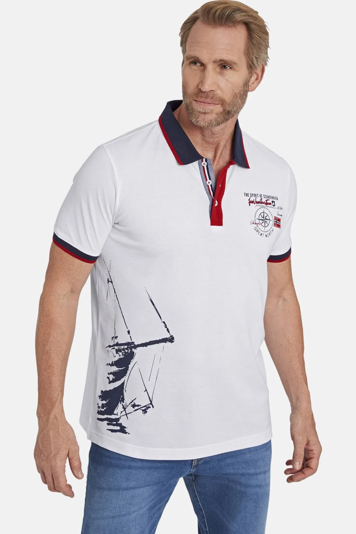 Jan Vanderstorm regular fit polo DILAN Plus Size met printopdruk wit