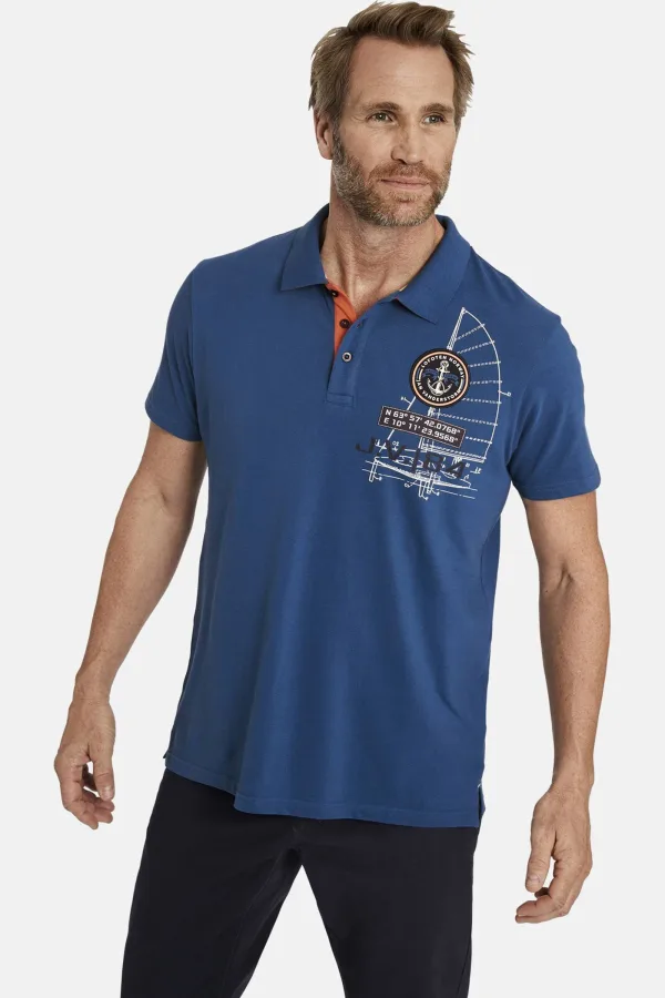 Jan Vanderstorm regular fit polo NICCO Plus Size met printopdruk blauw Prijzen